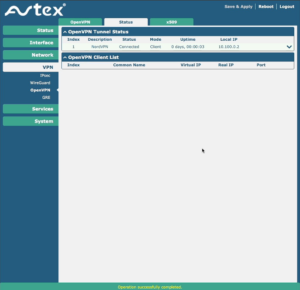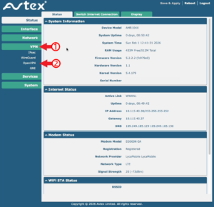Make sure the Avtex router is on-line and working. As a sanity check, I’m using a website called https://whatismyipaddress.com from here I can see the public IP address, my provider and what the website thinks is my approximate location, that being in Cambridge, UK. This is a useful check to perform later on too. So, everything is working – Here are the steps to installing the VPN on the router :