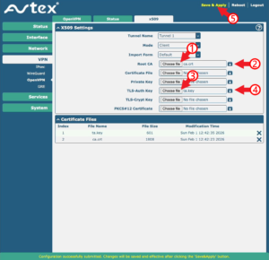 - Next to TLS Auth Key, click Choose File, and select the “Key” file we created earlier.