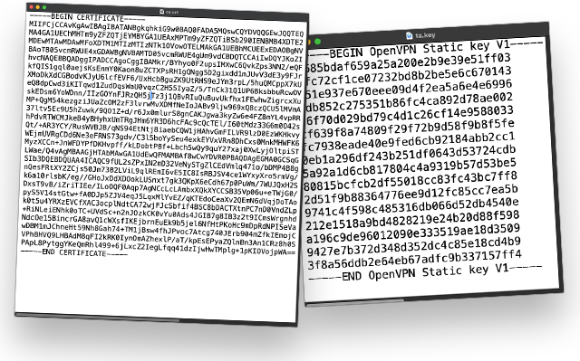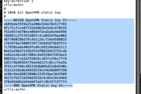 The next file we need to create is the TLS-Auth Key file. Don’t be scared of what this means, just trust the process. We will use the same method as before. In this instance we are looking for a section of the OVPN file that begins with